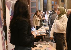 В централното фоайе в Ректората на Софийския университет „Св. Климент Охридски“ се провежда Ден на отворените врати. Инициативата е на Студентския съвет във висшето учебно заведение и има за цел да запознае кандидат-студентите с възможностите за обучение и със студентския живот в най-стария университет в България. 07.03.2026