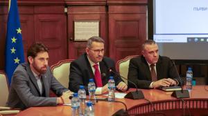 В зала „Голям колегиум“ на Министерството на земеделието и храните служебният министър на земеделието и храните Иван Христанов, изпълнителният директор на Българската агенция по безопасност на храните Ангел Мавровски и заместник-директорът на Главна дирекция „Национална полиция" Венелин Младенов дават съвместна пресконференция във връзка с акция „Чиста храна“, при която бяха разкрити нелегални кланници в областите Хасково и Кърджали. 27.03.2026 |