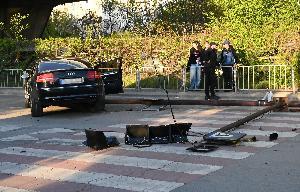 Катастрофа между три автомобила - „БМВ“ и две „Аудита“, събори светофарната уредба на пешеходна пътека. Мястото на инцидента е на столичния булевард „Христофор Колумб“ в квартал „Дружба“. Движението по булеварда е затруднено. При катастрофата няма пострадали хора. 24.04.2026