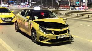 Таксиметровият шофьор е пострадал тежко и е транспортиран в болница с множество травми. По BMW-то има сериозни материални щети.