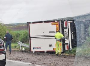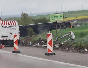 Тежкотоварен камион с чуждестранна регистрация се обърна край автомагистрала „Хемус“ при 16-ия километър в посока София.