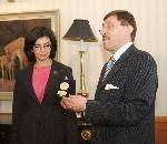 Максим Бехар връчва отличието на министър Меглена Кунева |
