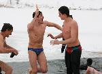 Смелчаците се обличат след топването в леденото езеро