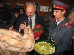 Стефан Китанов връчва бонуса към наградата - бутилка домашна гроздова, произведена от баща му |