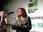 Валерия Ангелова от Орбител (вдясно) с наградата в категория "Услуги" за "Орбифон". Зад нея е Борислава Налбантова, мениджър по телекомуникации в Price Waterhouse Coopers
