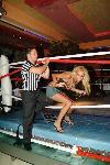 Реферът помага на фолк-звездата Никол да се промуши през въжетата
