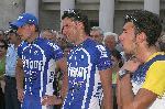От ляво на дясно Павел Шуманов носител на жълтата фланелка, Евгени Балев носител на зелената фланелка и Богдан Стойчев носител на бялата фланелка |
