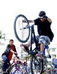 Велосипедист скача за снимка на пл. "Александър Невски" |