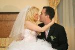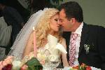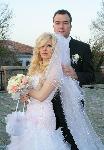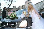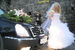 Булката и женихът Красимир Панайотов пред 6-метровата лимузина "Чеърмен", която ги докара пред олтара