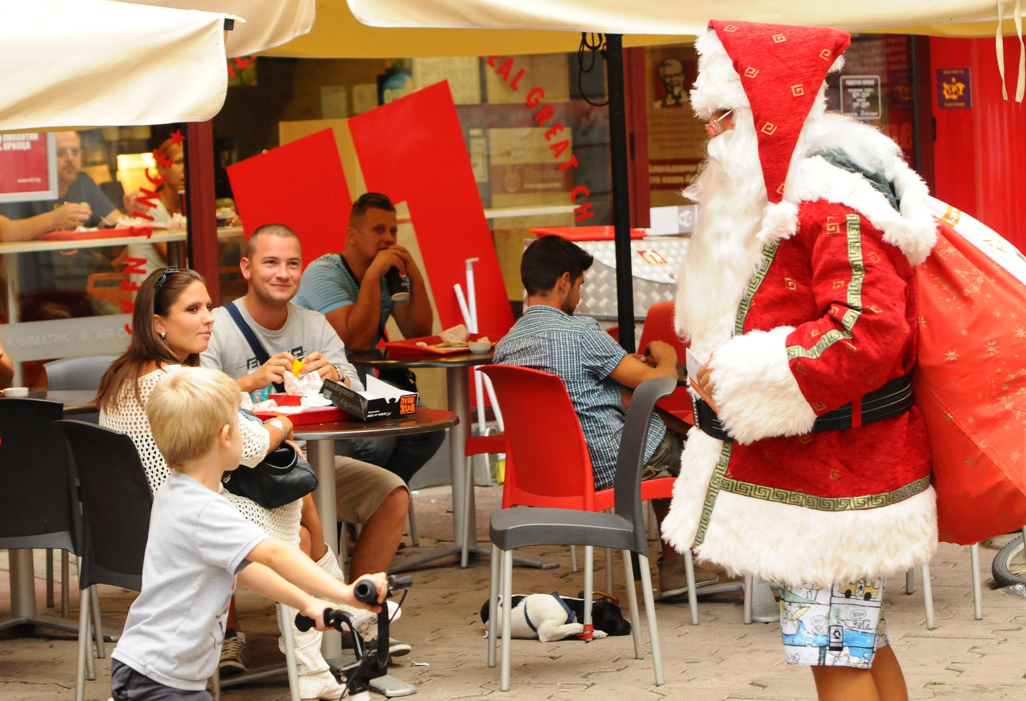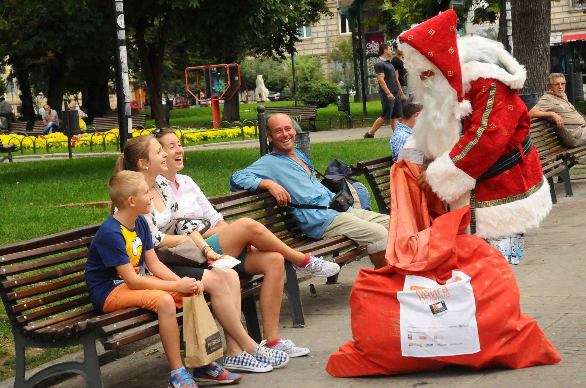 Дядо Коледа в летен костюм с къси панталони и джапанки подаряваше книги на хората, излезли на разходка през уикенда. Оказа се, че това е част от кампания за насърчаване на споделянето на книги на The Mall, където има специална библиотека за размяна на четива, достъпна за всички желаещи. Дядо Коледа предизвика приятни възклицания, минувачите си правиха снимки с него и го изпращаха с „Весели празници”! 26.08.2013