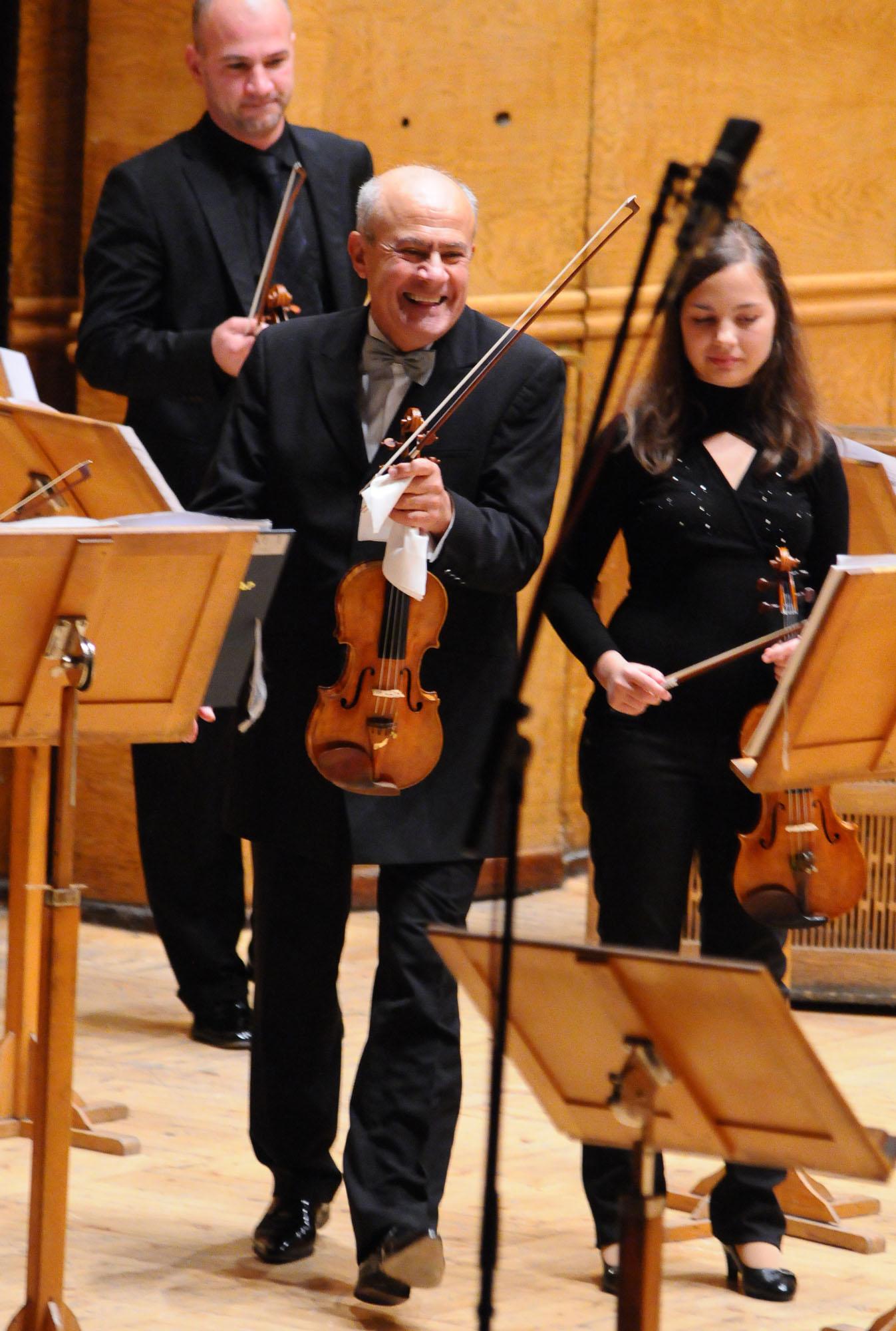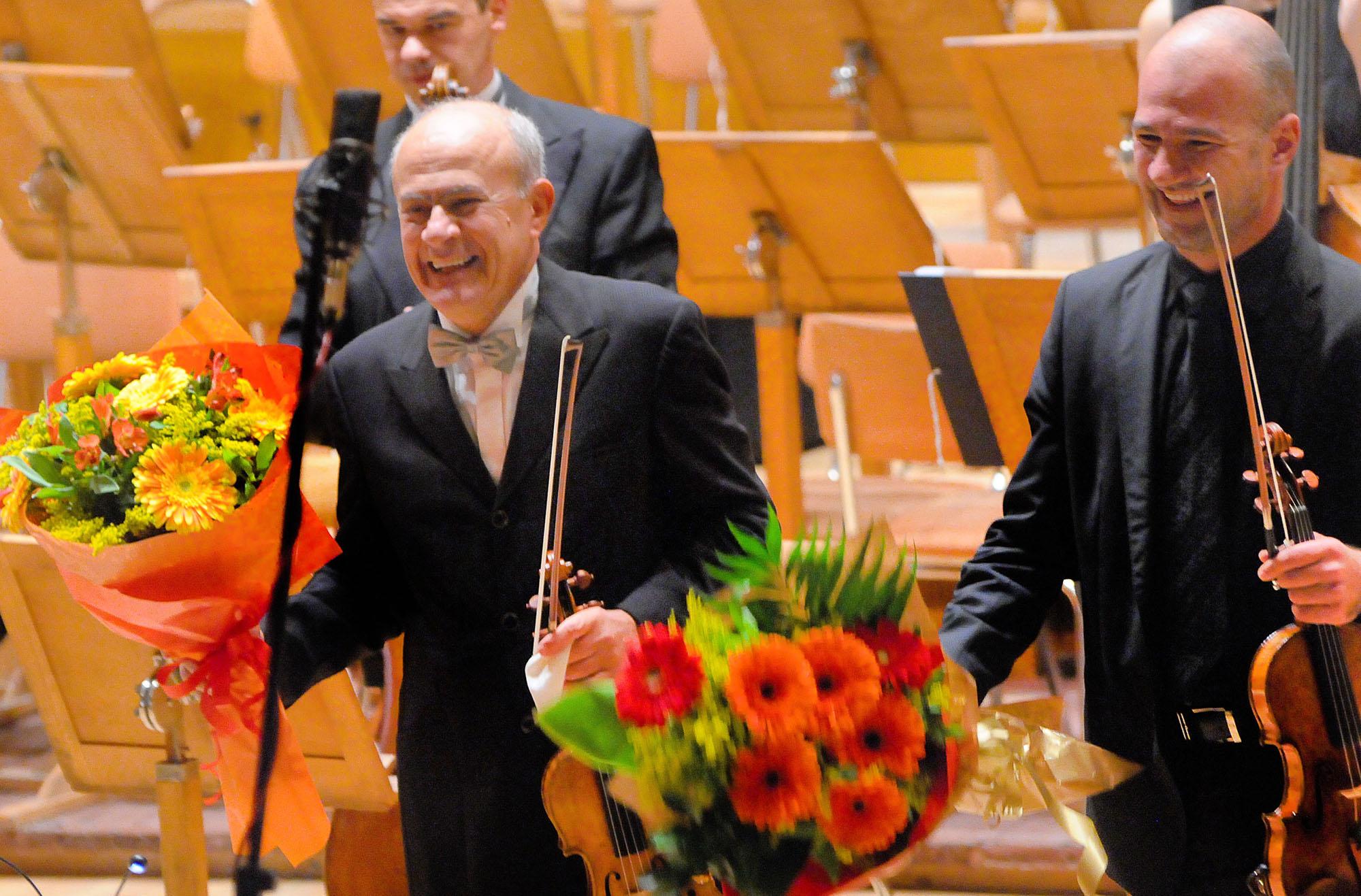 Радиосимфониците и маестро Емил Табаков откриха музикалния сезон 2013/14 с двойна премиера в зала „България“, на която свириха Минчо Минчев и Николай Минчев. На откриващия концерт, снощи, Симфоничният оркестър изпълни творби на Хайдн, Шнитке и Малер. „Програмата е построена по нов начин, като ще представим произведения създадени за камерен оркестър. На сцената в зала България ще прозвучи „Моц-арт а ла Хайдн“ от Шнитке , а след паузата ще представим съвсем различна по форма, конструкция и мащаби творба на Густав Малер – Симфония № 6. Обикновено тя се изпълнява самостоятелно, но тъй като е откриване на сезона, решихме програмата да бъде по-разширена“, обясни маестро Табаков, преди началото на репетицията за първата изява на оркестъра. Изпълнението на „Моц-арт а ла Хайдн“ е премиера за София, съобщи Минчо Минчев. „За мен и за сина ми Николай, концертът със Симфоничния оркестър на БНР е първа изява за сезона, а и лична премиера с произведението на Шнитке. С Радиосимфониците имаме невероятно взаимно уважение, респект и любов. Винаги, когато работим заедно, атмосферата е изключително приятна и резултатът винаги е много добър. Радиооркестърът е най-добрият състав, който имаме в България! Програмите на музикалния сезон са невероятно интересни и разнообразни и покриват интересите на любителите на симфоничната музика“, отбеляза знаменитият цигулар. 12.10.2013 |