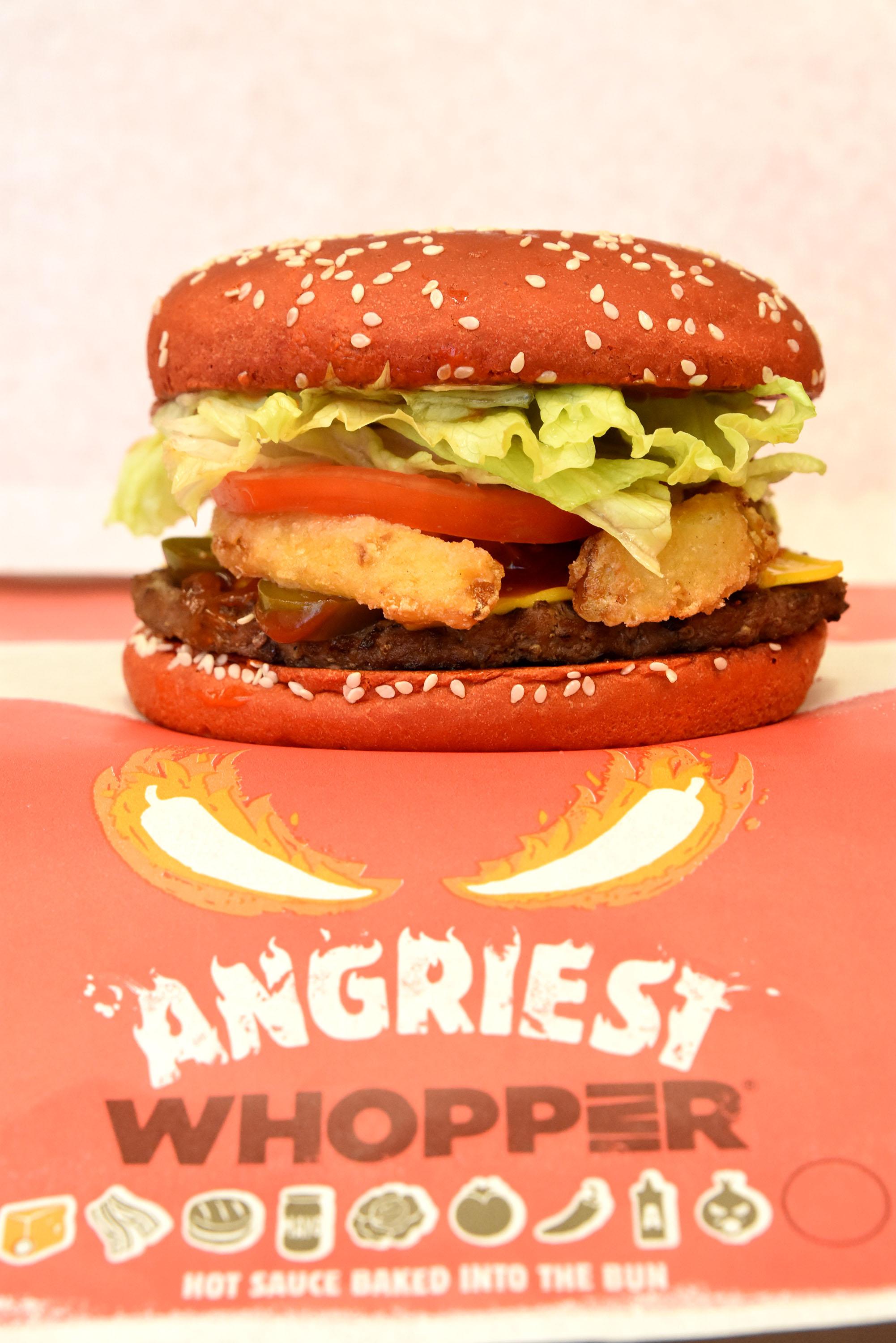 Веригата ресторанти за бързо хранене BURGER KING® представи Angriest WHOPPER® – изключително приключение за сетивата. Всяка хапка на Angriest WHOPPER® е като изригващ вулкан от вкусове. Новият бургер е с хрупкав “Angry” лук, пикантен сос и апетитни халапеньос, добавени към току-що свалено от огъня телешко и сирене „Чедър”, салата айсберг и свежи домати в огнено червено хлебче, изпечено със специален лют сос.