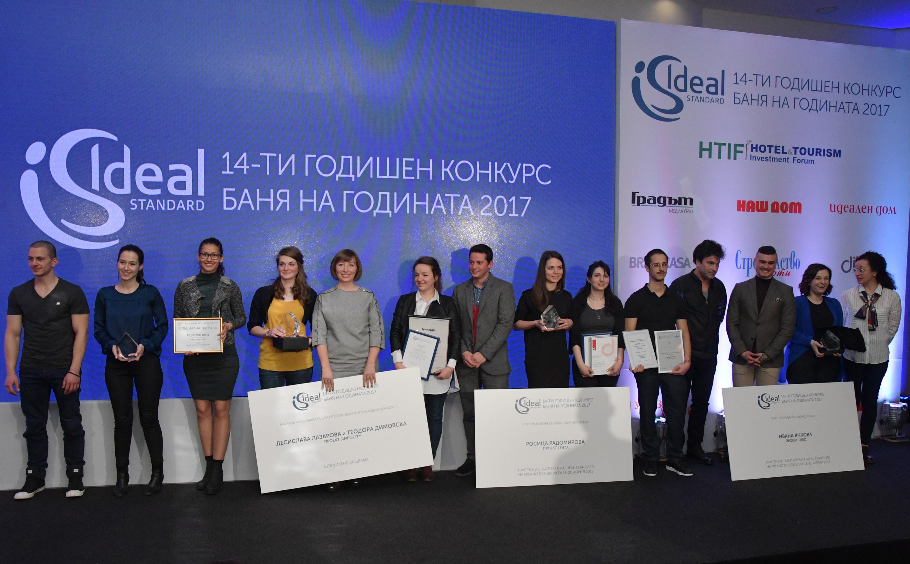 Основната мотивация за участниците също беше Ideal-на. Авторите на проектите на първо място в двете основни категории ще вземат участие в събитията на Ideal Standard в Milano Design Week 2018. Призовете „Баня на годината“ бяха връчени на Ивана Янкова за проекта й „Тяло“ (първо място в категория „Баня в бизнес хотел“) и Росица Радомирова за проекта й „Lenta“ (първо място в категория „Баня във ваканционен хотел“).