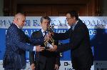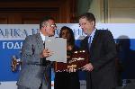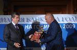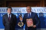 автор: Добрин Кашавелов Валентин Панайотов, председател на съвета на директорите на Асоциация "Банка на годината" подава наградата на Левон Хампарцумян пред погледа на президента Георги Първанов |