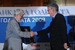 автор: Добрин Кашавелов Левон Хампарцумян, главен изпълнителен директор и председател на Управителния съвет на УниКредит Булбанк позира с наградата на конкурса "Банка на годината за 2009-та година" пред погледа на президента Георги Първанов |