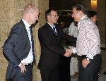 автор: Миро Златев Габор Хорват (в средата), генерален мениджър на Lufthansa за България и Албания и Щефан Лау (вляво), мениджър "Operations & Airport Services" посрещат гостите на партито |