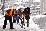Общински служители почистват улиците от снежната покривка