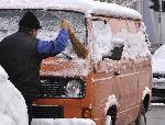 Шофьор почиства буса си от падналия сняг
