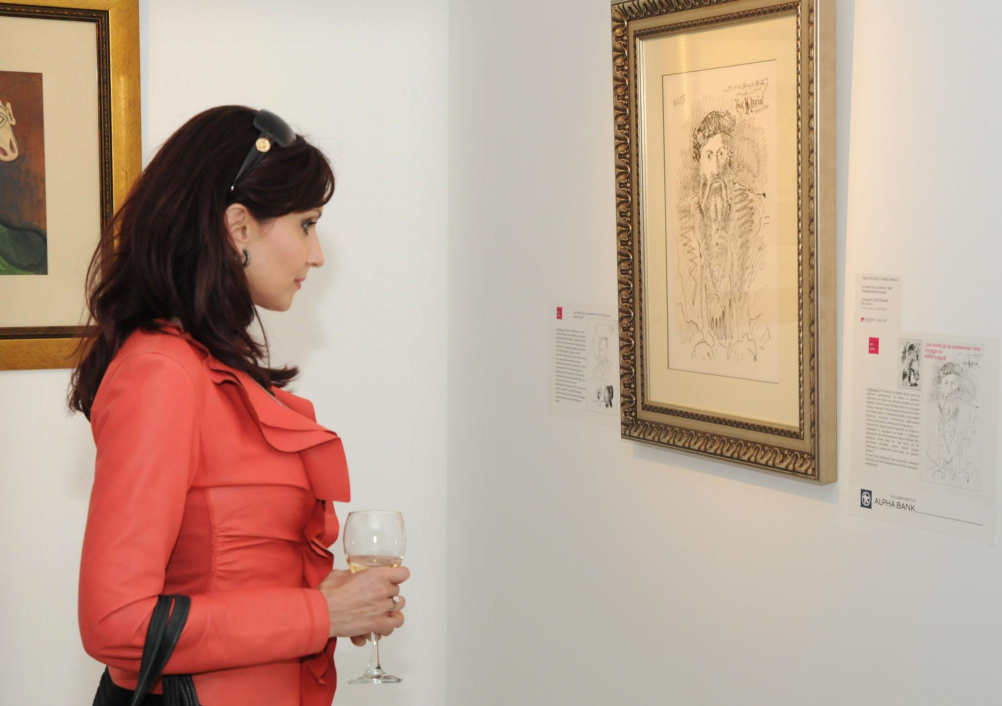 В арт салона на Оборище 10 почитателите на изкуството могат да видят пълната серия от „Калифорнийският скицник“, портфолио, върху което Пикасо работи от 1 ноември 1955 до 14 януари 1956. То включва 25 листа, подвързани със спирала, а подредбата на скиците в него може да изглежда объркваща на пръв поглед. Авторът е използвал първо всички страници от дясната страна и когато те свършват той обръща скицника и рисува върху гърба на всяка скица. Така от едната страна има изключително важната поредица от интериора на ателието, а от другата - етюдите с жената в турски одежди, както и няколко скици от известни произведения на дрезденския музей.
