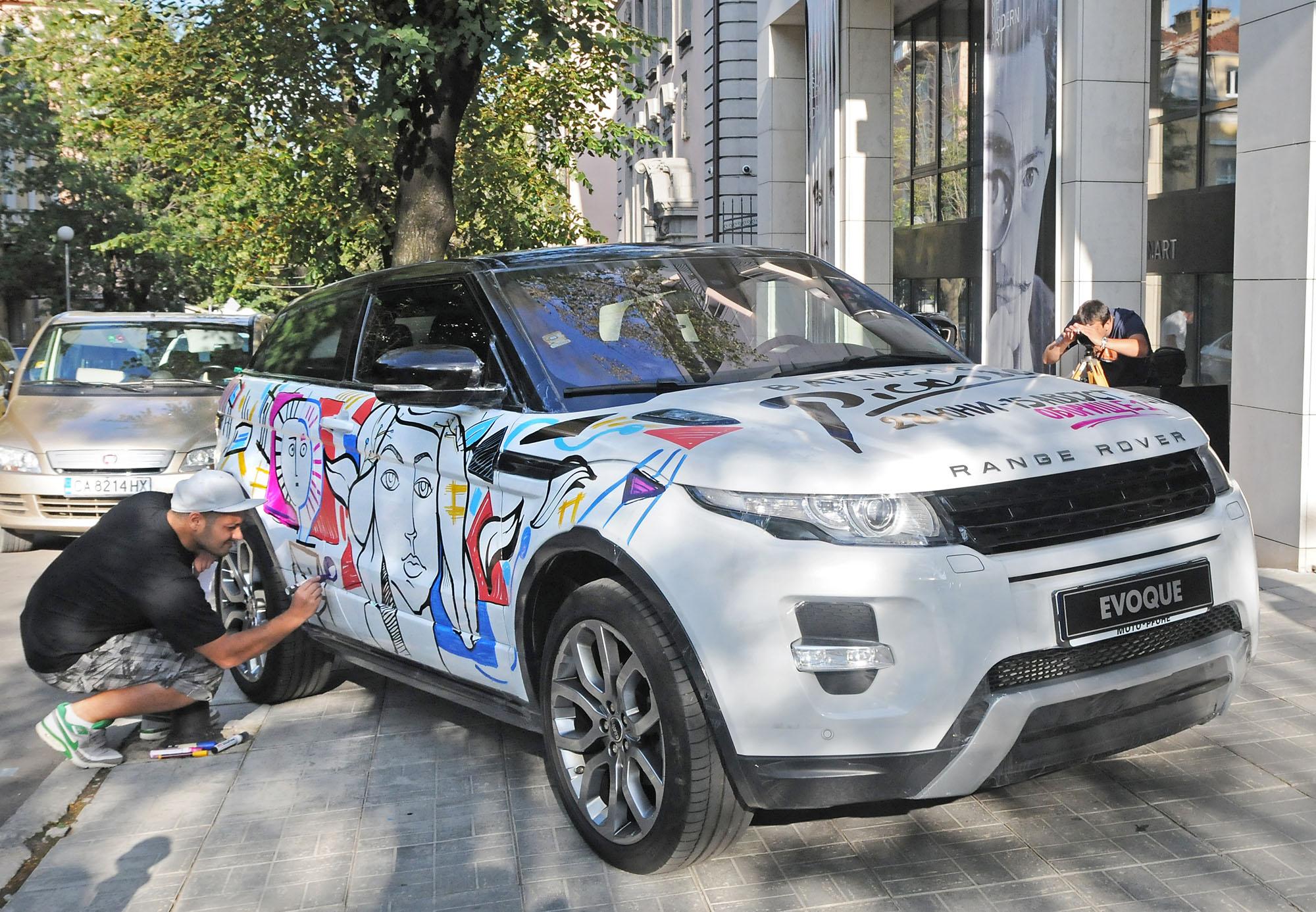 В магията на жива арт сесия се потопиха гостите при откриването на изложбата “В ателието с Пикасо“ в Галерията за модерно изкуство. Пред галерията група млади и талантливи художници демонстрираха сливането на автомобилния дизайн с изкуството като изрисуваха пред очите на ценителите един от най-желаните автомобили – Range Rover Evoque. От 28 юни до 1 юли уникалната арт инсталация ще се пренесе на площада пред Народното събрание.
