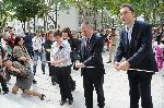 автор: Румен Раканов Учителката, най-вляво, прекрачва смело коварните стъпала, докато министърът на образованието и науката Сергей Игнатов прерязва лентата