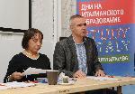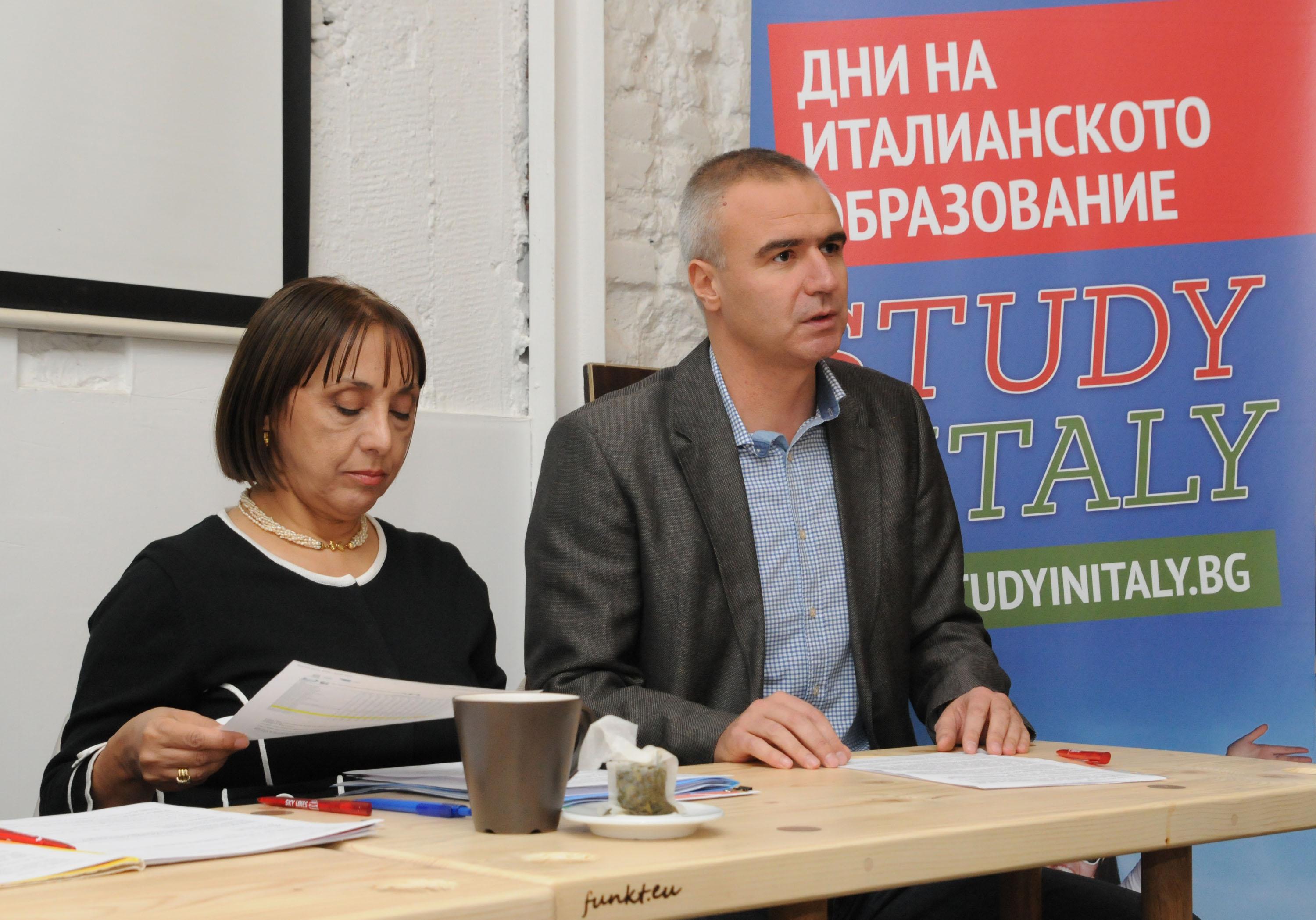Анна Амендоладжине, директор на Италианския културен институт в София и Димитър Александров, шеф на агенция за образование в чужбина "Skylines" на срещата