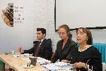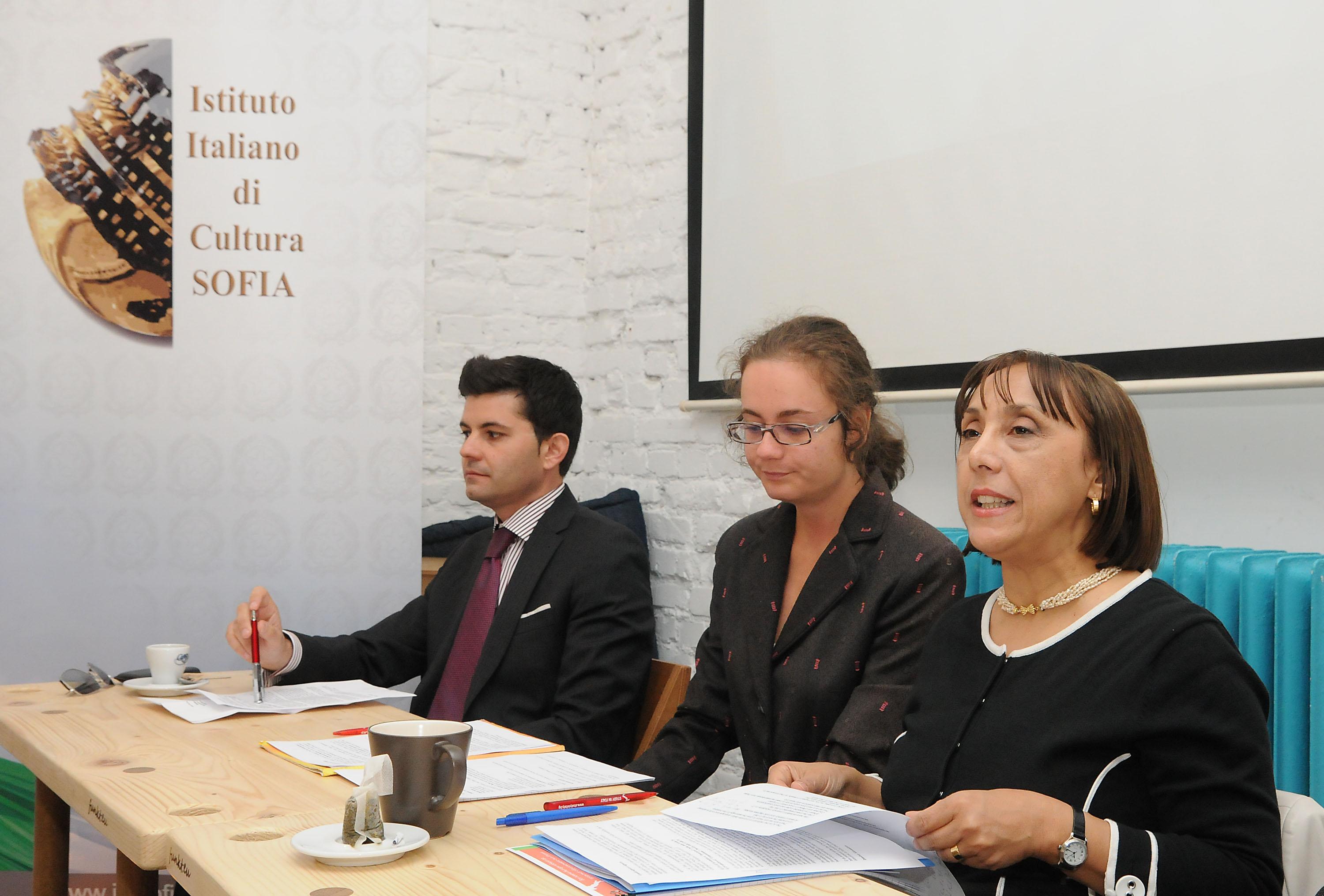 Джузепе де Франческо от “Конфиндустрия България”, Анна Амендоладжине, директор на Италианския културен институт в София и Димитър Александров, шеф на агенция за образование в чужбина "Skylines" на срещата с медиите