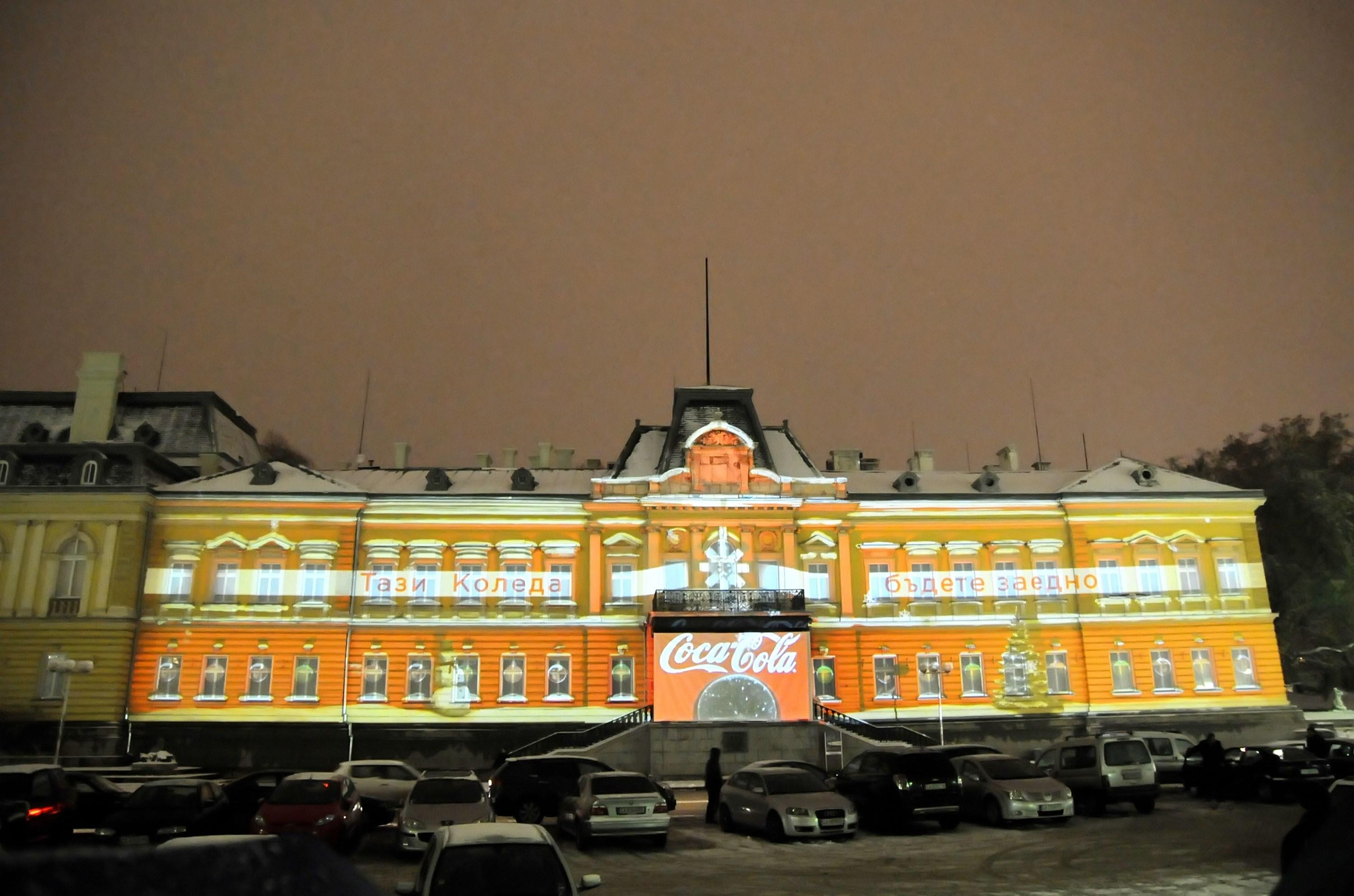 Въпреки студеното време, празничният дух събра ентусиазирани жители и гости на столицата на площад „Княз Александър I Батенберг“, за да отбележат настъпването на Коледните празници в компанията на свои близки и приятели. Те станаха свидетели на уникална интерактивна 3D видео проекция, която “оживи“ Националната художествена галерия. Емблематичната сграда заблестя със светлините на десетки празнични лампички и гирлянди. С вълшебните камиони на Coca-Cola „пристигнаха“ красиви Коледни дръвчета, които озариха фасадата. На терасата на галерията излезе и самият Дядо Коледа, за да поздрави малки и големи за предстоящите празници. Белобрадият старец помаха приятелски на хората и ги призова „Тази Коледа бъдете заедно!“. С това послание завърши пет минутната проекция, която зареди гостите с истинско Коледно настроение.