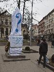 Три от символите на София осъмнаха опаковани тази сутрин. Паметникът на Васил Левски, на Патриарх Евтимий и Руски паметник са опаковани с бял плат и изрисуван въпросителен знак. До паметникът на Васил Левски има надпис: "Защо паметникът е издигнат на това място?", а до този на Патриарх Евтимий:"Коя столица е защитавал този патриарх?". По информация от служител на Столична община, инициативата е на фондация "Свети, Свети Кирил и Методий" и е свързана с провокиране интереса на гражданите към историята на България. Според служителя, мнозина от по-младите столичани не знаят например, че паметникът на Васил Левски е издигнат на мястото, където той е бил обесен, както и, че Патриарх Евтимий е защитавал Търново по време на обсадата на султан Баязид І. Малко по късно служители на общината започнаха разопаковането на паметника на Васил Левски. Близо един час им беше нужен да свалят белия плат от монумента. По-рано гражданин е спрял с колата си и с нож е започнал да реже въжетата с които е бил затегнато платното. Това доведе до струпаването на доста полиция в района. 16.02.2013 |