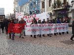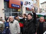След като хилядите протестиращи скандираха няколко минути пред празната сграда на ЕВН, множеството се реорганизира, стегна редиците и се отправи обратно към Централна поща, за да може да се протестира на по-голямо пространство.
