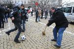 Докато президента обявява служебното правителство, протестиращи играха футбол пред сградата на президентството