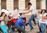 В Международния ден на боя с възглавници около 50 младежи превърнаха пространството пред Народен театър "Иван Вазов" в бойно поле. Близо 5 минути продължи налагането между две групи ентусиасти. ЗаМеждународния ден на боя с възглавници се очакваше 130 града по целия свят да се включат в инициативата. В София събитието е организирано от Swift Gap Events.
