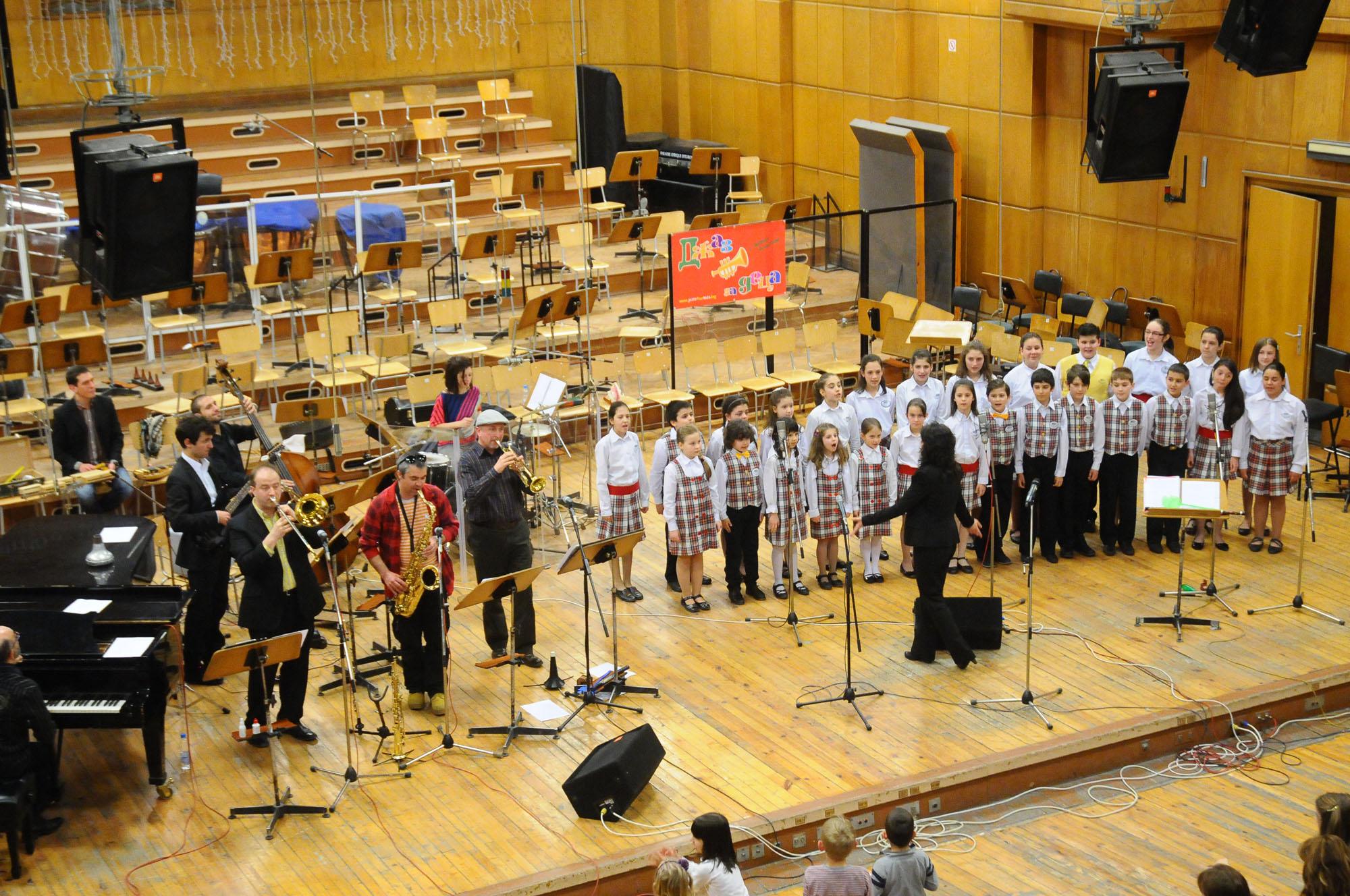 Снощи в Първо студио на Българското национално радио /БНР/ се състоя Пролетен детски джаз концерт. Музикантите в състав: Венцислав Благоев, Павлин Павлов, Петър Момчев, Теодор Петков, Димитър Благоев, Димитър Карамфилов и Невена Григорова и детската вокална група “Щурче” с диригент Ирена Христова, бяха подготвили интересна програма. Сред авторите на песните са Любомир Денев, Владимир Джамбазов, Бенцион Елиезер, Дора Драганова, Борис Карадимчев и Красимир Милетков. Специални гости на концерта бяха композиторът Любомир Денев, кавалджията Недялко Недялков и 13-годишната Даниела Илиева. Ролята на БНР за проекта „Джаз за деца“ е водеща. Програмата на Пролетния детски джаз концерт е изцяло българска, а почти всички песни в него са от Златния фонд на Българското национално радио, създаван като специална продукция за деца през последните 30 години. “Преди петнайсет години, когато свирехме в един увеселителен парк в Германия, нямахме барабанист. Давахме на децата от публиката различни ударни инструменти. Малките имат много развито чувство за ритъм и ми хрумна, че по този начин можем да ги запалим да навлязат като активни слушатели в музиката”, си спомня Венцислав Благоев, който е сред водещите солисти на Биг Бенда на БНР, а джаз концертите за деца са негова запазена марка. Верен на жанра, той импровизира идеята си в различни формати и под различен надслов. 11.04.2013 |