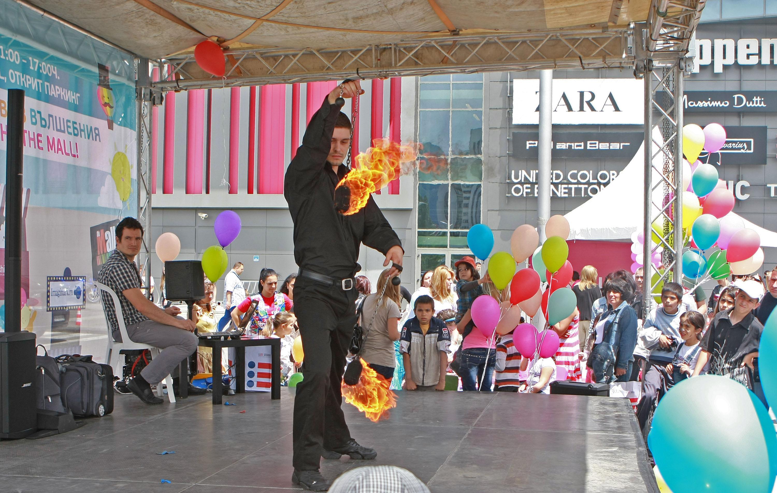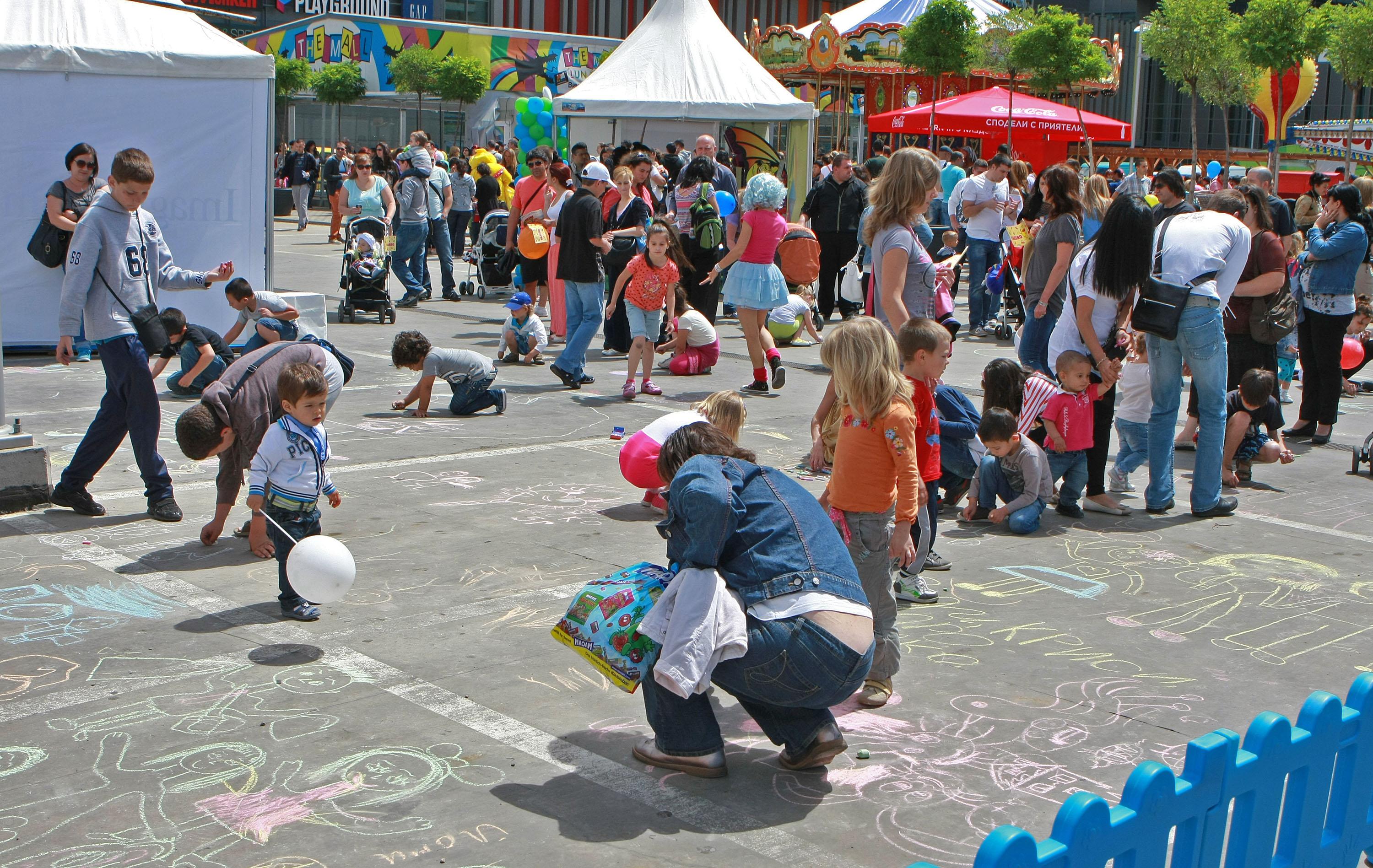 На 1 юни The Mall подари на децата шарен и пъстър празник с много игри, забавления и неподправена детска радост! Празничната програма забавляваше деца и възрастни през целия ден на паркинга на търговския център. Барабанено шоу на „Батакуда“, огнено шоу, детски цирков спектакъл, магии и фокуси бяха само част от богатата програма. Децата участваха в конкурс за детска рисунка на асфалт, състезаваха се в спортни игри, рисуваха и се забавляваха. По време на празника The Mall осигури на децата шатра, в която се сплитаха плитчици на малките дами, рисуваха се маски заедно със студенти от „Нов български университет“.