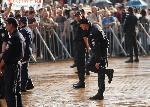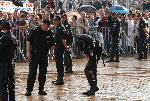 Полицията е отцепила с метални ограждения района пред сградата. Към момента в целия района има засилено полицейско присъствие.