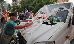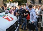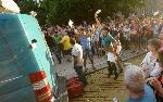 автор: Евгени Димитров Тълпата хвърля бутилки по буса на ТВ-7 |
