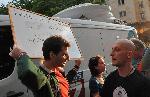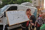 Съвсем по прогноза, на втория протест се появиха и традиционните екстремисти от агитките. Те се нахвърлиха на бус с екипа на TV-7, спаднаха гумите и се опитаха да увлекат тълпата протестиращи да линчува журналистите от медията. Тогава се намеси млад човек от протестиращите. Той написа бързо с флумастер лозунг "TV7, елате със нас, протестът е и за вас!" и застана спокойно срещу тълпата, която хвърляше бутилки и трошеше буса. Момчето успя да успокои нормалните протестиращи, и така останаха само няколкото голи глави, които не успяха да изпълнят до край намерението си. Бусът на телевизията остана със спаднати гуми, охвърлян с яйца и тоалетна хартия, а в продължение на половин час, докато течеше опитът за линч нито един от многобройните полицаи не намери за необходимо да се намеси, за да успокои страстите. 15.06.2013 |