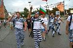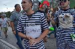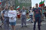 Част от протестното шествие днес се спря подходящо декорирано пред централата на политическа партия ГЕРБ в столицата.  В челото на недоволните се открояваха двойници на Бойко Борисов, Цветан Цветанов, Сегрей Станишев и Ахмед Доган, облечени в затворнически дрехи, а до тях - имитиращ Волен Сидеров, облечен в усмирителна риза. 25.06.2013 |
