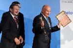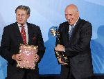 автор: Миро Златев Петър Кънев (вдясно) връчва отличието за КТБ на изпълнителния директор на финансовата институция Илиан Зафиров |
