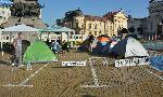 До паметника на Цар Освободител продължава да има палатков лагер на протестиращите. А част от лагеруващите се нагостиха със специално омесен хляб, символ на исканията за оставка на правителството. 15.07.2013