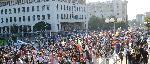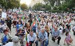 Част от протестиращите пред паметника на Васил Левски