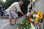 Протестиращ срещу правителството "Орешарски" поднася цветя на паметника на Васил Левски