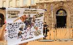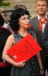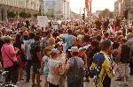 Групата, която претвори картината на Дьолакроа с френската свобода и по-рано неволите на Волен Сидеров под пластмасовата маса, е тук. С малко грим и реквизит днес те са “извели” на площада Р.Овч, Ахмед Доган с фес, Волен Сидеров, банкера Цветан Василев, Сергей Станишев с червена пионерска връзка, депутата Бат’ Сали и др. “Ние сме организаторите на протеста. Парите свършиха, разотивайте се!”, зове ефендито с феса зад мегафона. “Да построим АЕЦ “Белене”, това е най-изгодната атомна електроцентрала в света! Само в Северна Корея има по-изгодна”, апелира Р.Овч. 20.07.2013 |
