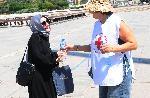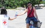 Доброволци на БЧК раздават вода в юлските Горещници