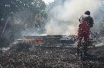 автор: Любомир Бенковски - Бенджи Пожарникар загася с тупалка огъня в сухите треви |