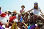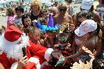 Дядо Коледа пристигна изненадващо от далечна Лапландия в летен Бургас. Заедно със своята помощничка Снежанка днес те зарадваха децата в района на Северния плаж. Дядо Коледа носеше и традиционния голям чувал пълен с подаръци, които раздаде на всички свои посрещачи. 10.08.2013