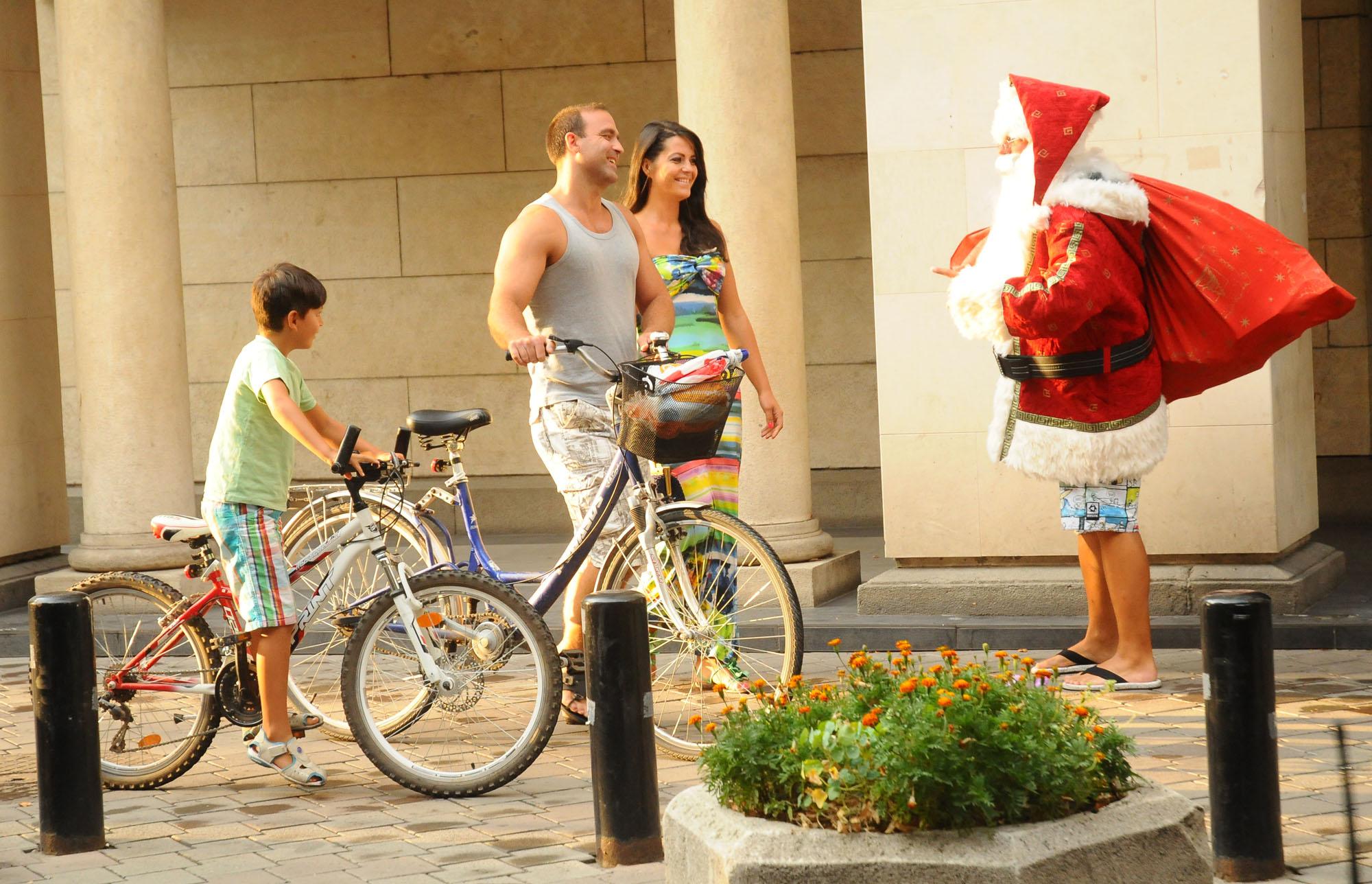 Дядо Коледа в летен костюм с къси панталони и джапанки подаряваше книги на хората, излезли на разходка през уикенда. Оказа се, че това е част от кампания за насърчаване на споделянето на книги на The Mall, където има специална библиотека за размяна на четива, достъпна за всички желаещи. Дядо Коледа предизвика приятни възклицания, минувачите си правиха снимки с него и го изпращаха с „Весели празници”! 26.08.2013