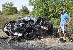 Зверска катастрофа стана на Е-80 между Хасково и Клокотница малко преди 17 часа днес. Турска „Тойота“ се е ударила в микробус, после в тир.  В мелето на пътя са засегнати още две коли – турски „Опел“ и „Форд Транзит“ с хасковска регистрация. Двамата пътници от „Тойота“-та са били извадени от смачканата кола от огнеборци, които са рязали тенекиите, за да се доберат до тях. И двамата са откарани в хасковската болница. Пътниците в останалите засегнати от катастрофата автомобили по първоначална информация не са пострадали сериозно. Асфалтът е осеян с отломки от колите, има локви от масло и гориво. Международният път бе затворен в двете посоки, образували са се километрични колони. 28.08.2013 |