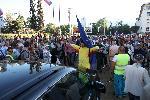 Депутатите бяха блокирани от демонстранти в административната сграда на Народното събрание и в момента им се налага да излизат пеша пред БНБ и там да се качват на колите си.  04.09.2013