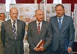 автор: Николай Варадинов Председателят на Народното събрание Михаил Миков, Симеон Сакскобургготски и председателят на Съюза на филателистите в България Спас Панчев разглеждат издадената книга